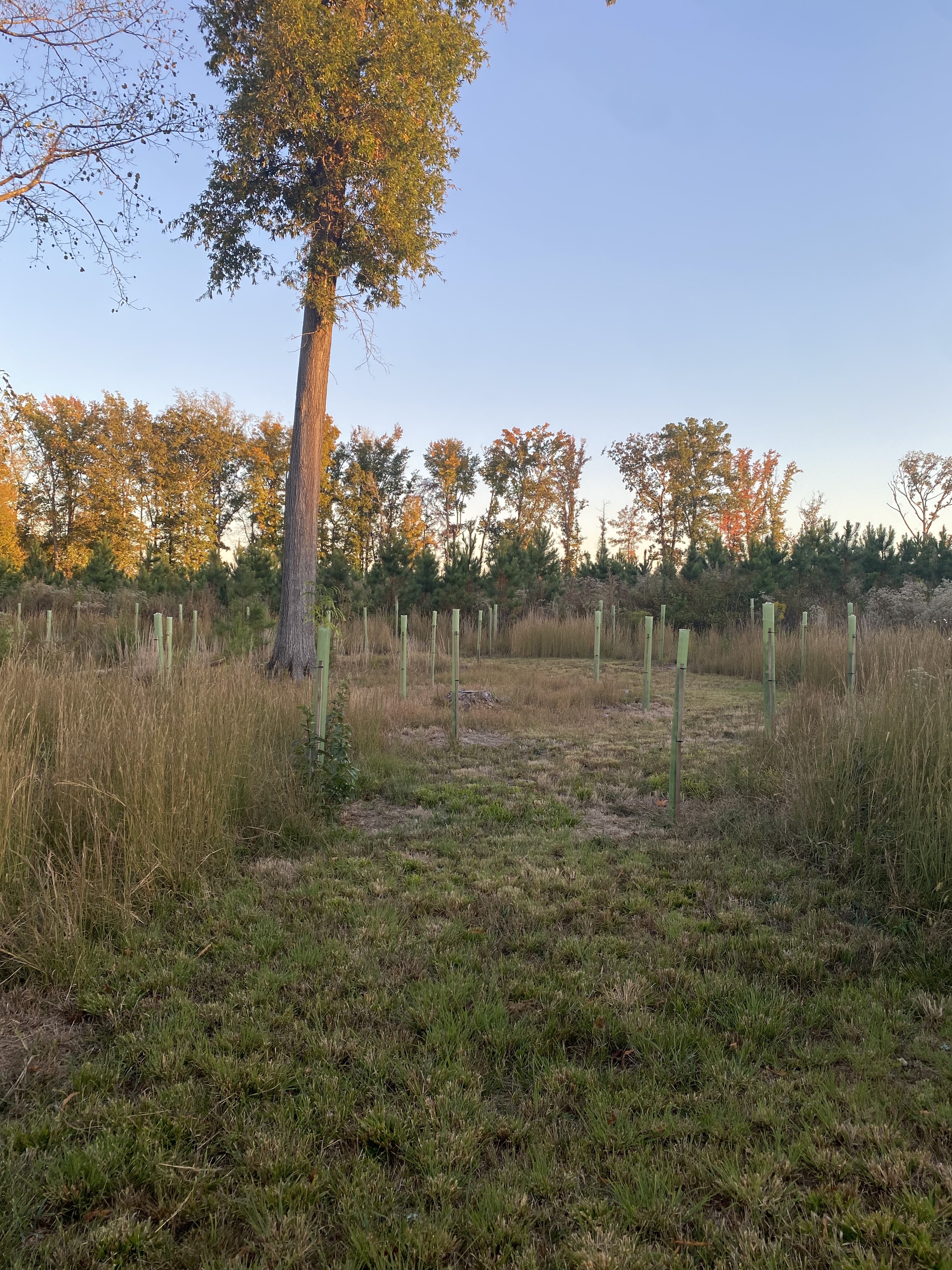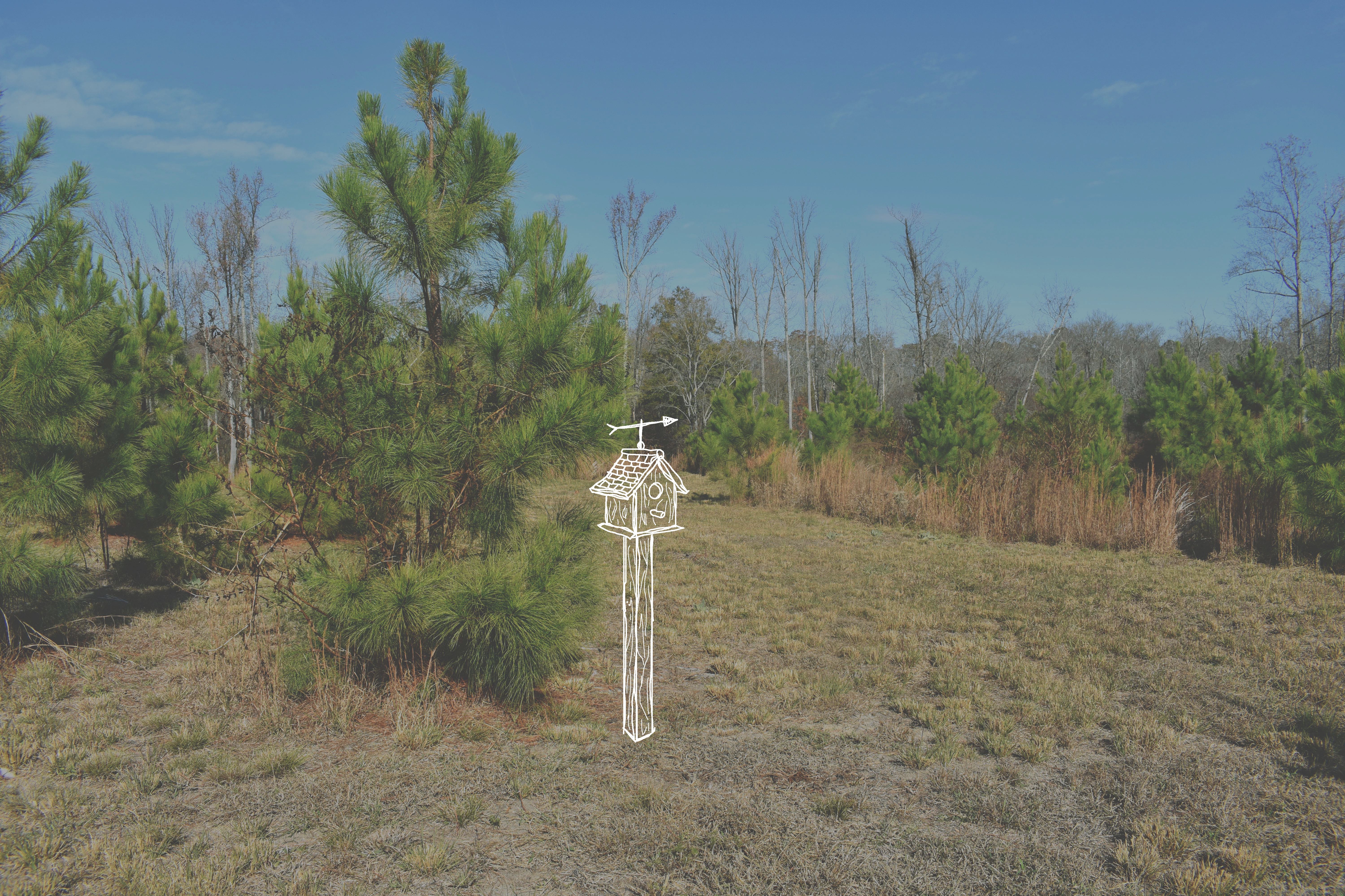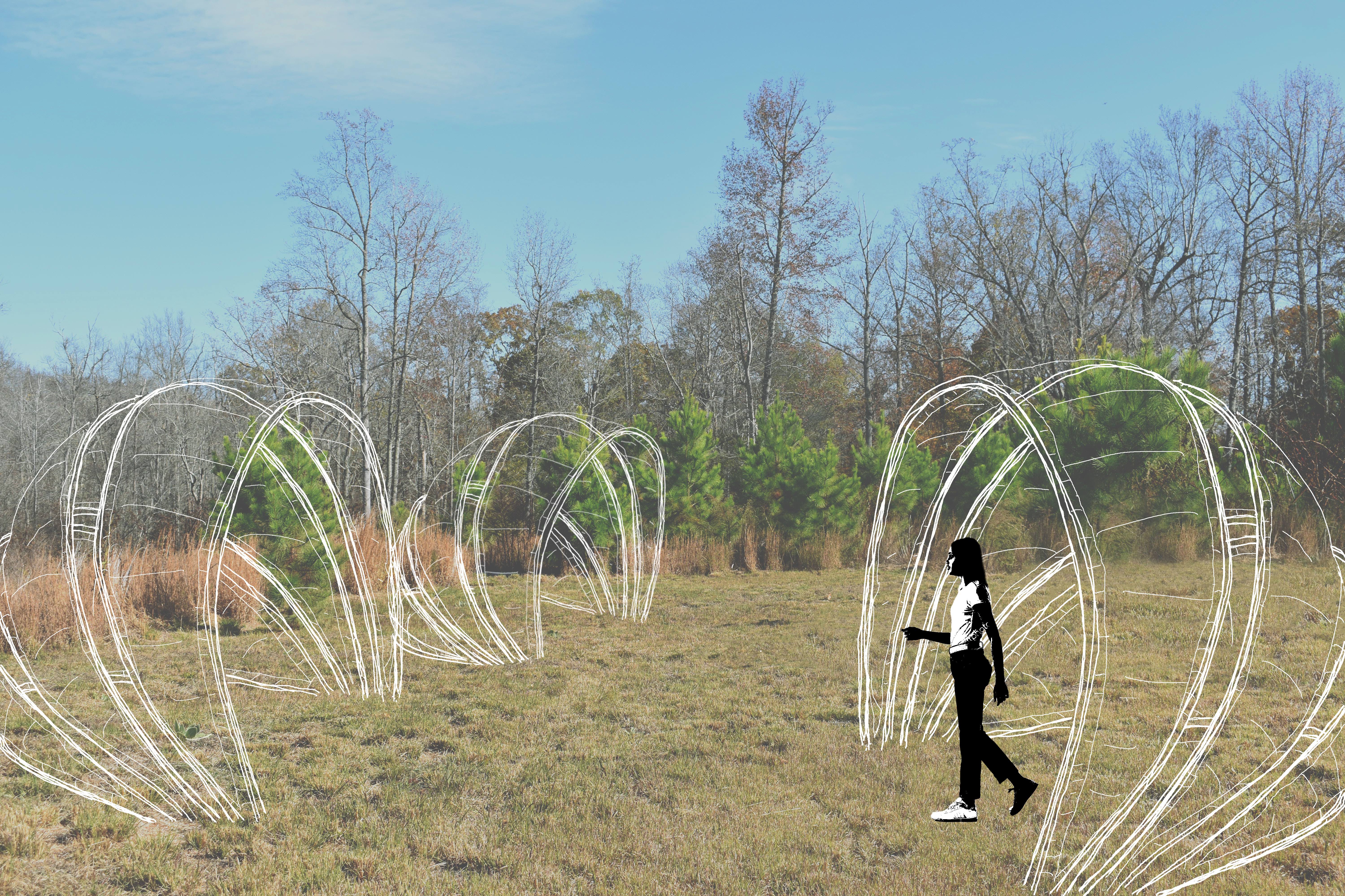 Curves (bottom right) accentuate the rolling hills providing an overlook for critters and visitors alike. Rolled broomsedge raises awareness of the importance of wetland preservation.
