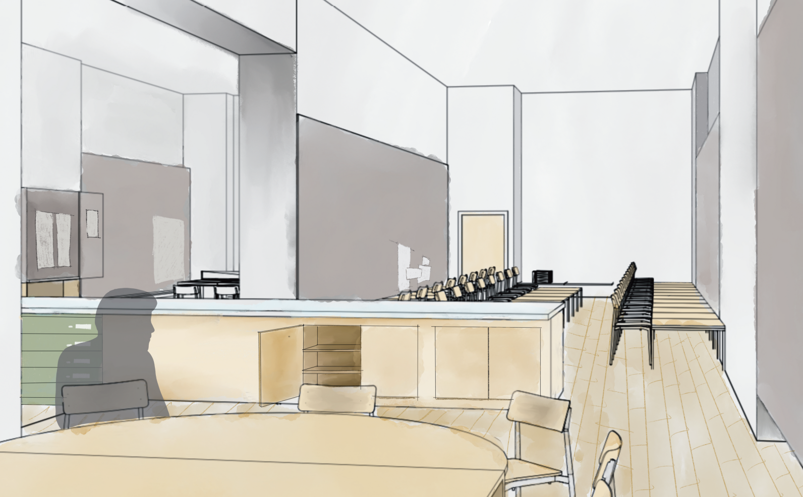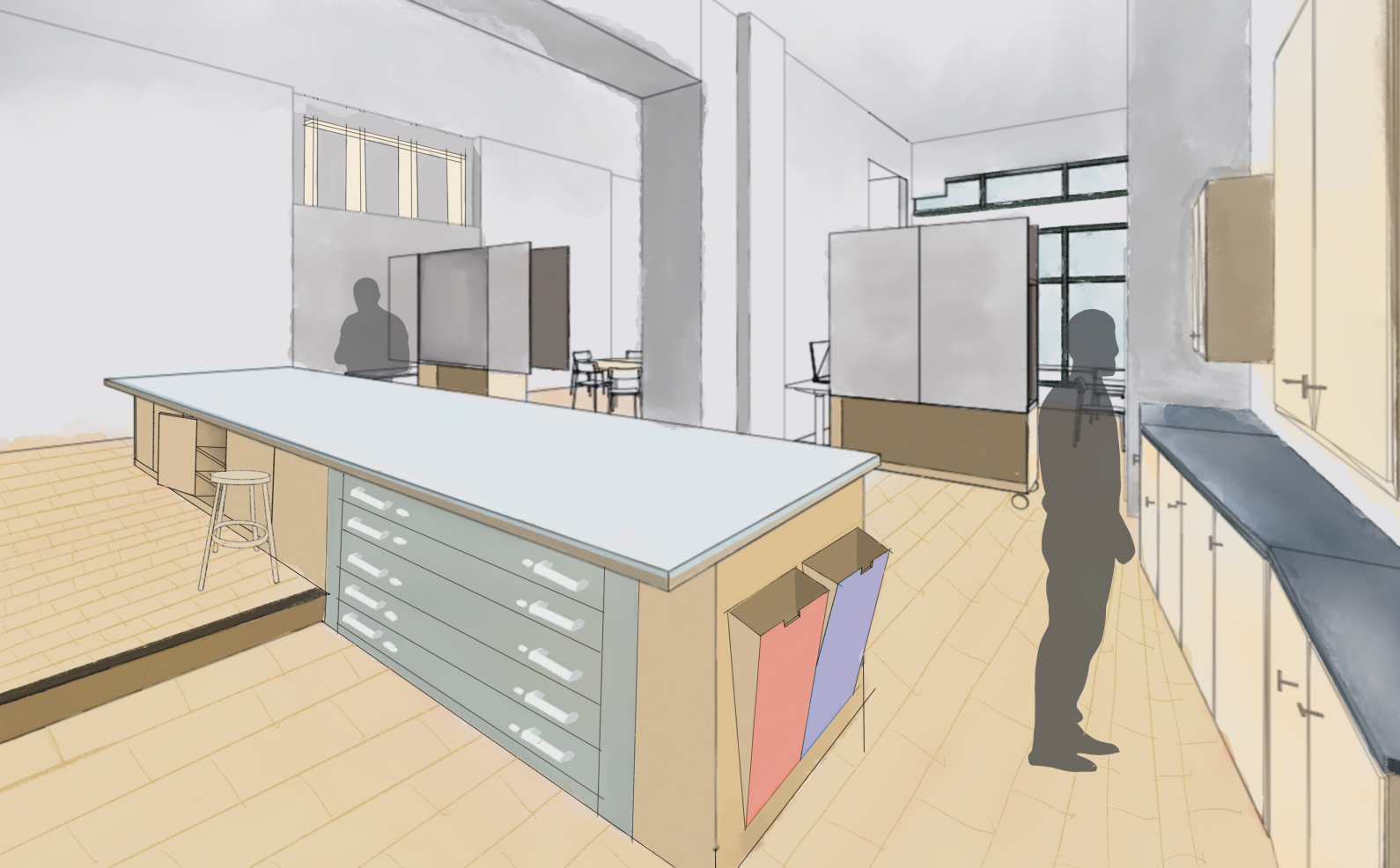These two significant design changes allow moments for the community to interact more with both spaces through curiosity and creativity, and the symbolism here follows through to more minor design changes throughout the studios.